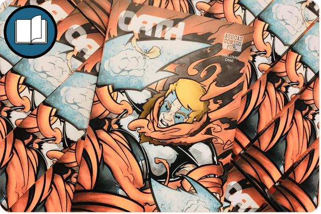 Print is BEST! Get all 5 issues of Myrrom Galaxy: Oath in one manga-sized (5″ x 7.5″) collection. This 100-page print edition is perfect for fans of indie comics, superhero stories, and original graphic novels. Inside, you’ll discover the full origin of Dwaine Oakson—an ordinary man who becomes the superhero known as Oath.